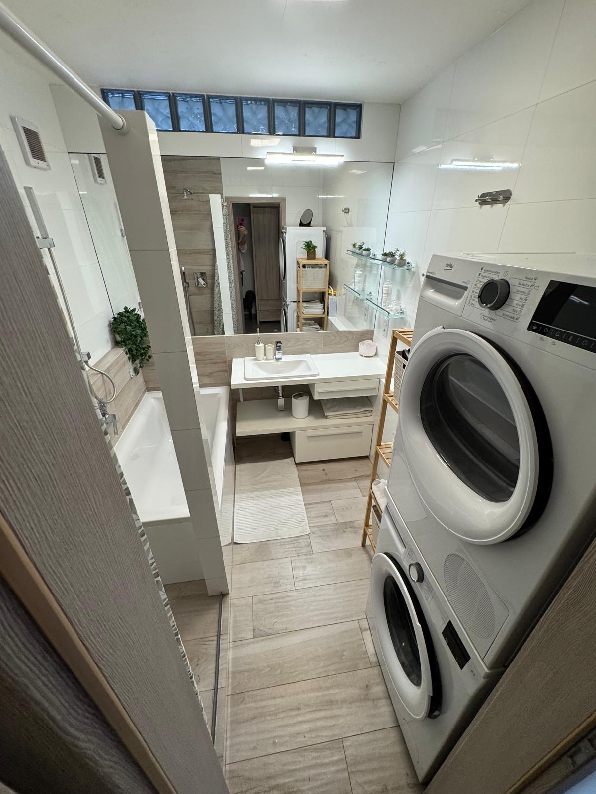 - kúpeľňa s vaňou, sprchovacím kútom, umývadlom, práčkou a sušičkou,