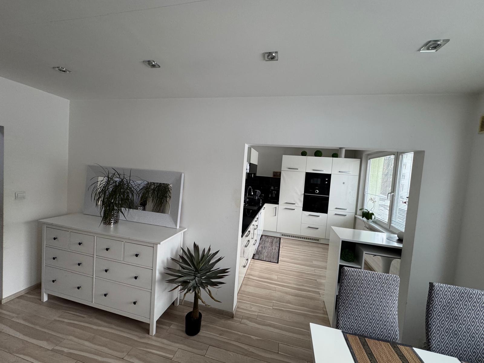 - priestranná obývacia izba s výstupom na balkón, prepojená s kuchyňou a jedálenským priestorom,